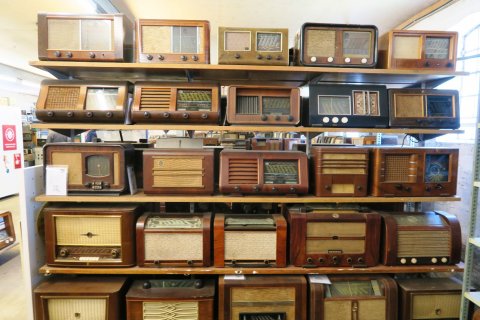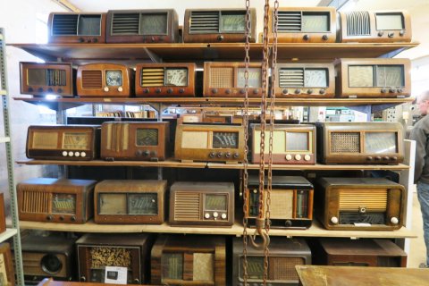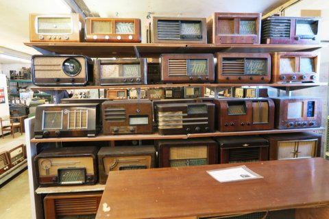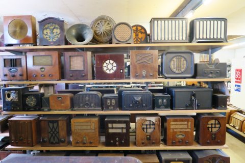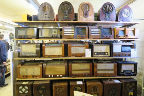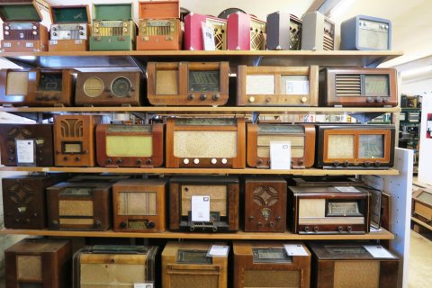 Hovedsagelig danske radioer er udstillet, men også en del tyske radioer. Radioerne står på hylder i kronologisk orden. Begyndende med krystal modtagere, radioer med udvendige rør, radioer i kabinetter og til radioer fabrikeret I 1960’erne.